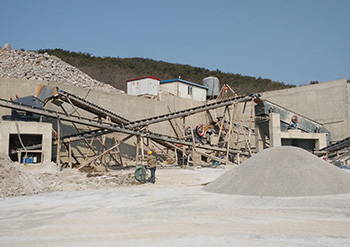 石灰巖原料通過給料機進入HJ98顎破進行粗碎,經皮帶機進入PFW1214III液壓反擊破進行細碎,經振動篩篩分10-30mm作為粗骨料,其余為細骨料,部分細骨料進入VSI9526離心沖擊破做成精品機制砂。