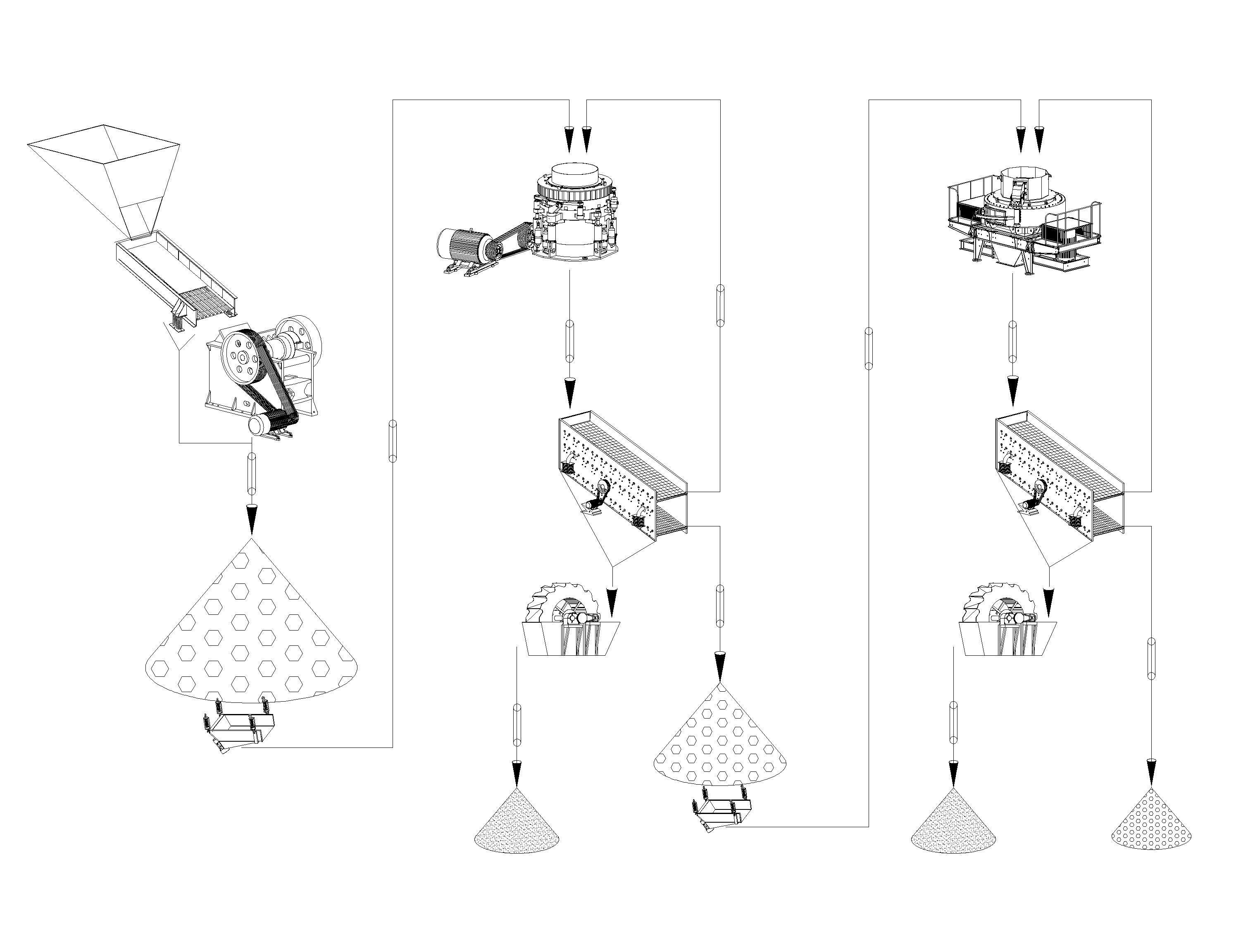 該客戶是當地首批進入砂石行業的石料生產商,現場負責人操作管理經驗豐富,并且月當地某大型的攪拌站有長期合作。主要設備:PE500*750顎破一臺、HPC220圓錐破一臺、VSI9526制砂機一臺等。