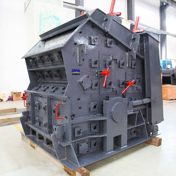 PF系列反擊破利用沖擊能破碎物料。轉(zhuǎn)子在電動(dòng)機(jī)的帶動(dòng)下高速旋轉(zhuǎn),從進(jìn)料口進(jìn)入的物料與轉(zhuǎn)子上的板錘撞擊,受到板錘的高速?zèng)_擊被破碎;破碎后的物料又被反擊到襯板上再次破碎;末了從出料口排出。