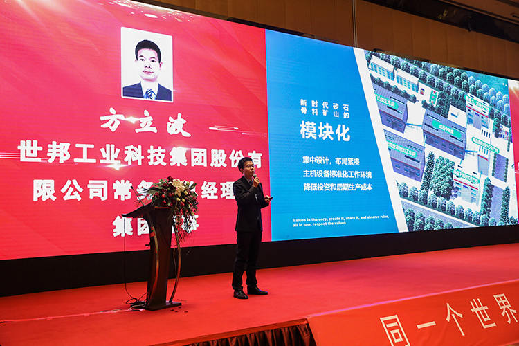 報告中,方總分點闡述了世邦在打造骨料礦山項目時對“綠色化、安全化、模塊化、工業(yè)化、智能化、品質(zhì)化”六大設(shè)計理念的堅守,間接解讀了世邦集團多年來如何吹響高質(zhì)量發(fā)展號角,實現(xiàn)了從單一裝備供應(yīng)商到綠色礦山一體化落地解決方案專家的身份轉(zhuǎn)型。
