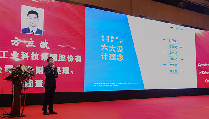 2019年砂石骨料大會上,世邦集團(tuán)常務(wù)副總方立波向參會人員講解世邦綠色化等六大設(shè)計理念。