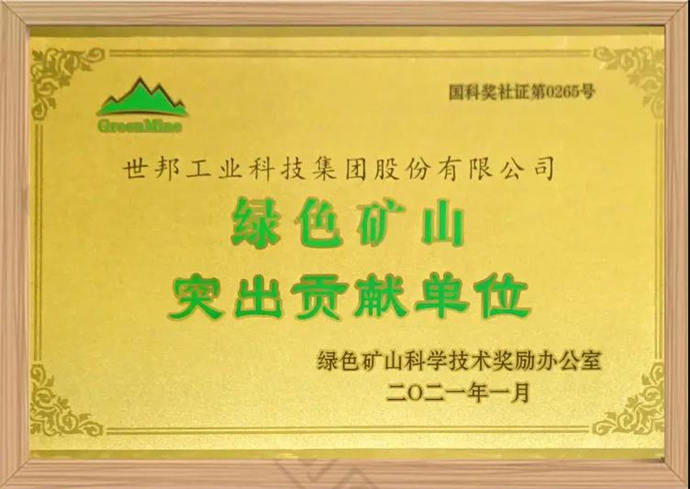作為《砂石行業(yè)綠色礦山建設(shè)規(guī)范》(點(diǎn)擊閱讀)的起草單位,世邦集團(tuán)多年來與國內(nèi)外知名院校、設(shè)計(jì)院合作,注重綠色化、智慧化礦山建設(shè),不斷加大創(chuàng)新力度,致力于為客戶項(xiàng)目綠色、高效、智能生產(chǎn)而提供增值服務(wù)。世邦憑借在綠色礦山領(lǐng)域取得的卓越成績,于2021年1月獲“綠色礦山突出貢獻(xiàn)單位”榮譽(yù)稱號。