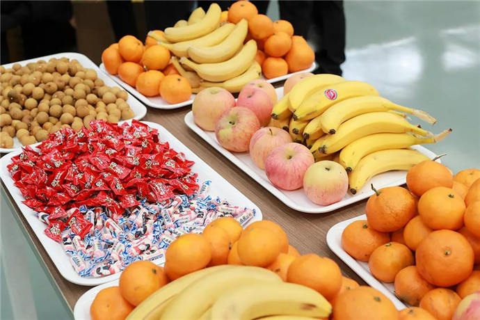瓜果點心,游戲談心,歡聲笑語,滿腔熱情。車間外寒風正緊,車間內其樂融融!
