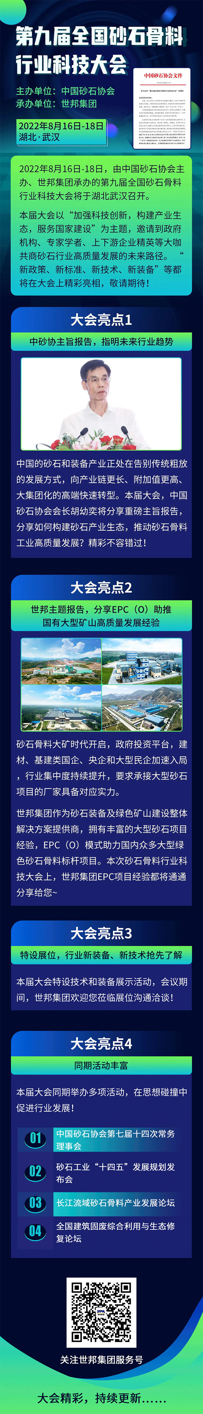 世邦集團誠邀您參加“第九屆全國砂石骨料行業科技大會”