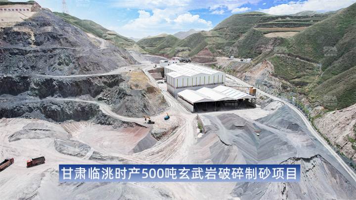 甘肅臨洮,礦區(qū)巖石以玄武巖為主,經(jīng)檢測,石料壓碎值達到13%,單軸抗壓強度為95MPa,適用于高強、高性能混凝土和道路、隧道、橋梁等建筑工程用材。基于原礦石特性和成品高品質(zhì)骨料需求,項目對破碎工藝方案和破碎設備提出了嚴格要求。