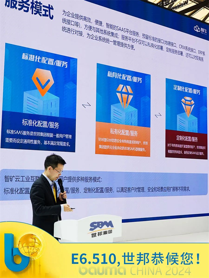 世邦智礦云平臺(tái)是以客戶為中心,打造的專屬于礦物破碎篩分領(lǐng)域的工業(yè)互聯(lián)網(wǎng)云平臺(tái),本次寶馬展,智礦云平臺(tái)2.0版本正式發(fā)布。