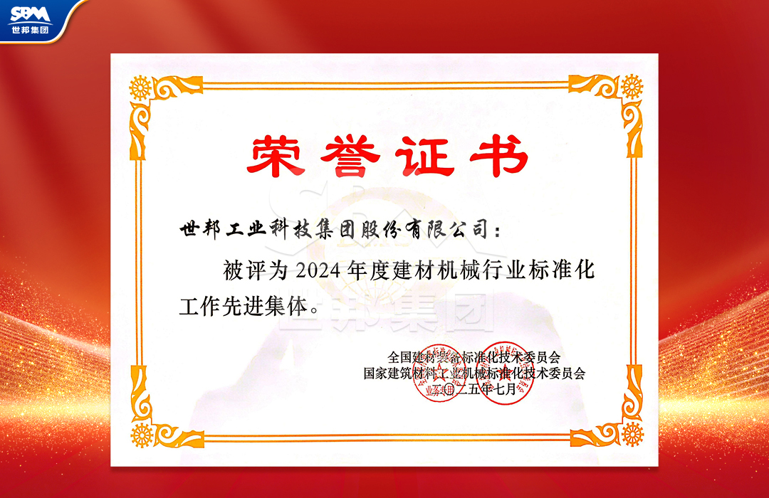 近日,經全國建材裝備標準化技術委員會及國家建筑材料工業機械標準化技術委員會嚴格評審,世邦集團憑借在行業標準體系建設中的突出貢獻,被授予“2024年度建材機械行業標準化工作先進集體”稱號。這一榮譽不僅是對世邦集團長期致力于行業標準化建設的高度認可,更彰顯了企業在推動行業規范化發展中的示范作用。