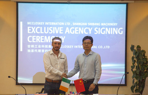2016年9月10日,世邦工業科技集團股份有限公司(SBM)與愛爾蘭知名履帶破碎篩分站制造商MCCLOSKEY完成獨家代理簽約儀式,Mccloskey 授權SBM 代理銷售其全系列履帶破碎篩分設備,并初步劃定中國及中國客戶在海外的投資地為合作區域。