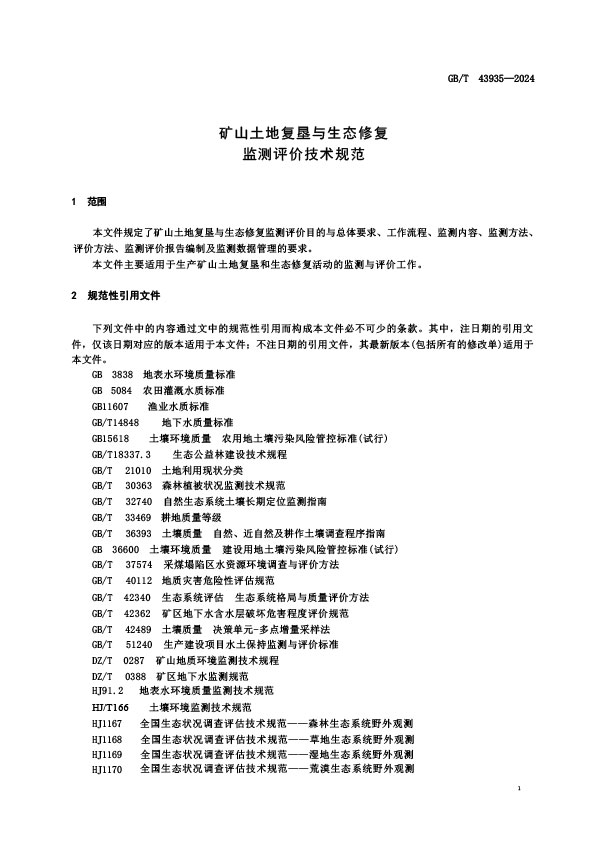 礦山土地復(fù)墾與生態(tài)修復(fù)監(jiān)測評價技術(shù)規(guī)范