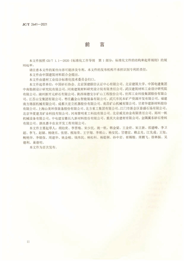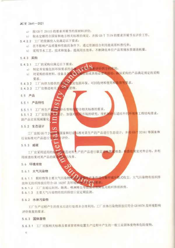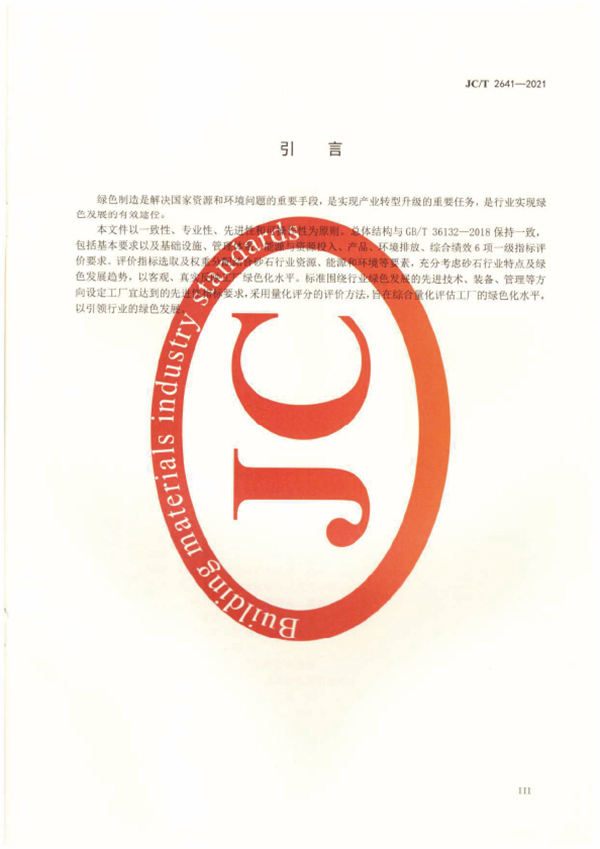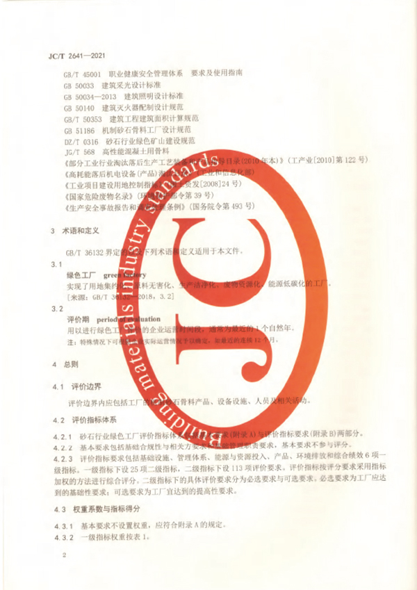 本標準根據砂石行業特點及綠色發展趨勢,以節能、減排、綠色、低碳為核心,圍繞行業先進技術、裝備、管理等方向,制定了綜合全面的砂石行業綠色工廠評價指標體系,適用于機制砂石骨料企業的綠色工廠創建與評價。