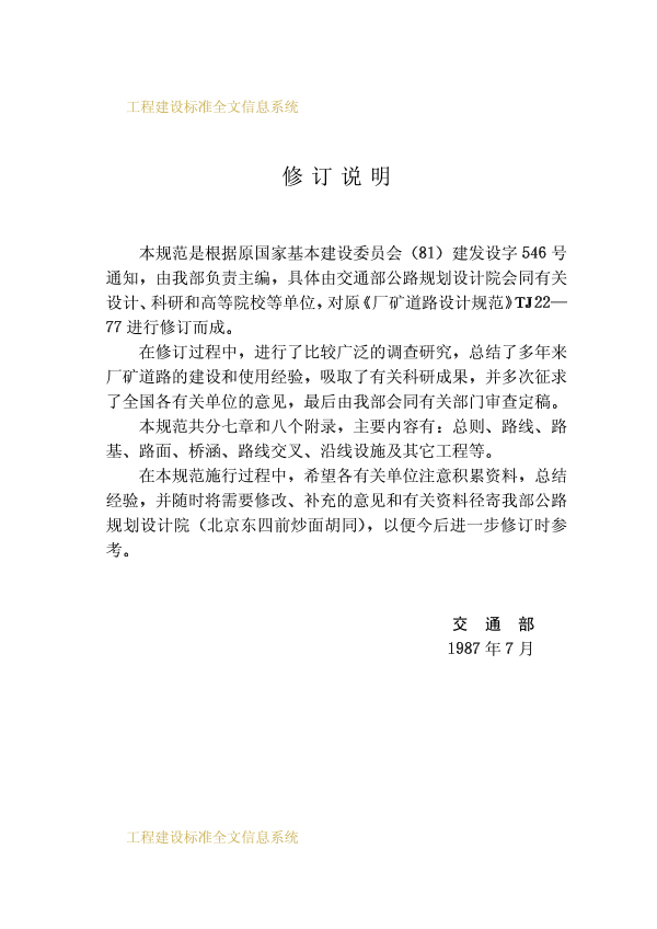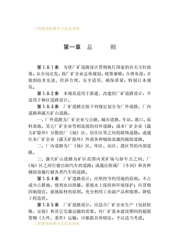 世邦集團(tuán)手機(jī)站為使廠礦道路設(shè)計(jì)貫徹執(zhí)行國(guó)家的有關(guān)方針政策,從全局出發(fā),按廠礦企業(yè)總體規(guī)劃,統(tǒng)籌兼顧,合理布設(shè),并做到技術(shù)先進(jìn)、經(jīng)濟(jì)合理、安全適用、確保質(zhì)量,特制訂本規(guī)范。本規(guī)范適用于新建、改建的廠礦道路設(shè)計(jì),不適用于林區(qū)道路設(shè)計(jì)。