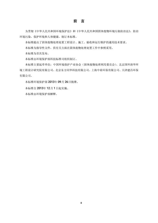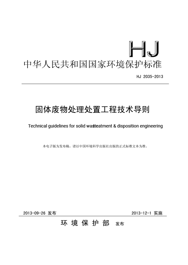 為防治環境污染,保護環境和人體健康,制訂本標準。本標準規定了固體廢物處理處置工程設計、施工、驗收和運行維護的通用技術要求,適用于除危險廢物處理處置以及廢物再生利用以外的固體廢物處理處置工程。