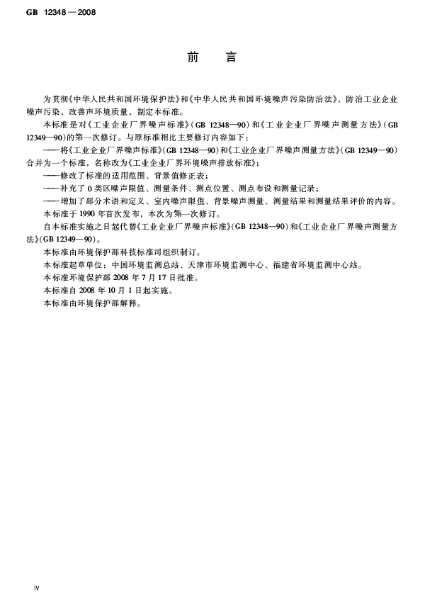 本標準規定了工業企業和固定設備廠界環境噪聲排放限值及其測量方法。本標準適用于工業企業噪聲排放的管理、評價及控制。